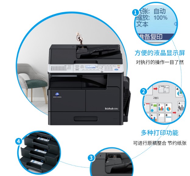 柯尼卡美能達(dá) KONICA MINOLTA bizhub 205i A3黑白數(shù)碼復(fù)合機(jī)(雙面輸稿器+單紙盒)bizhub 206升級版免費安裝