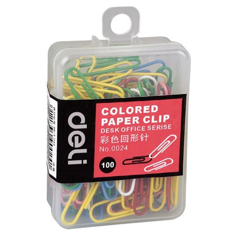得力 0024 曲別針 彩色回形針辦公分類整理曲別針七彩糖果色萬(wàn)字夾塑料盒裝100枚