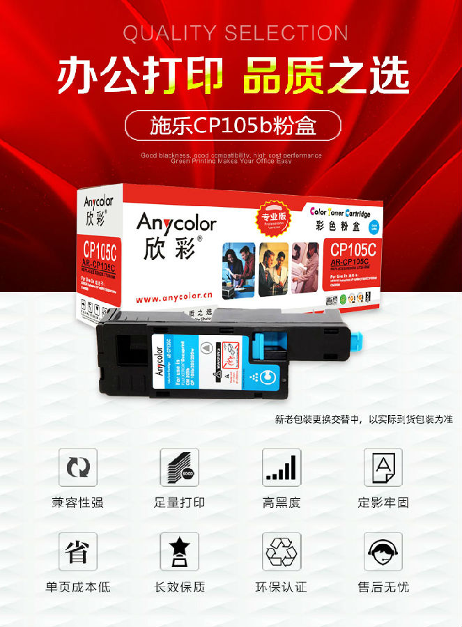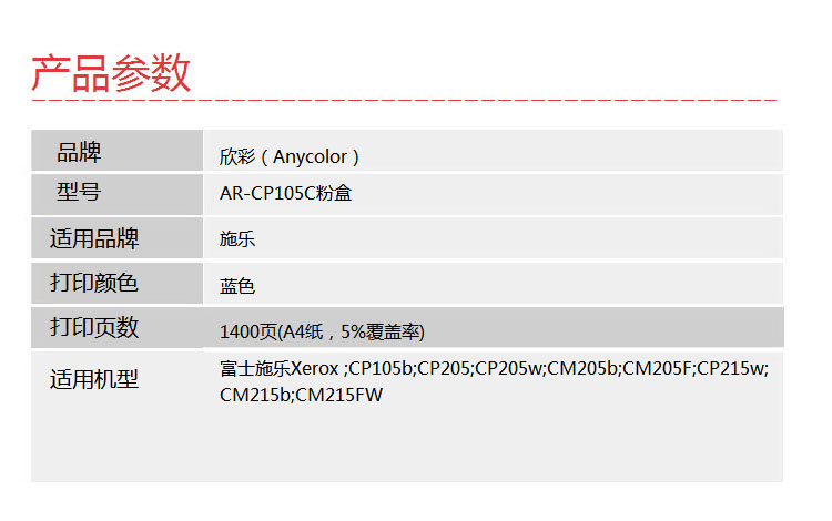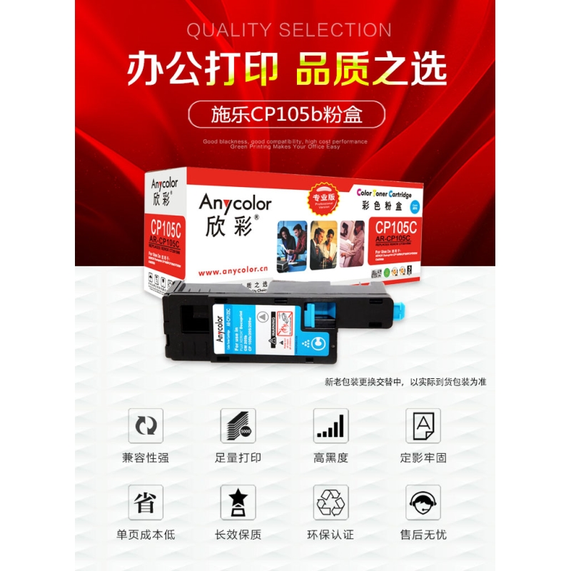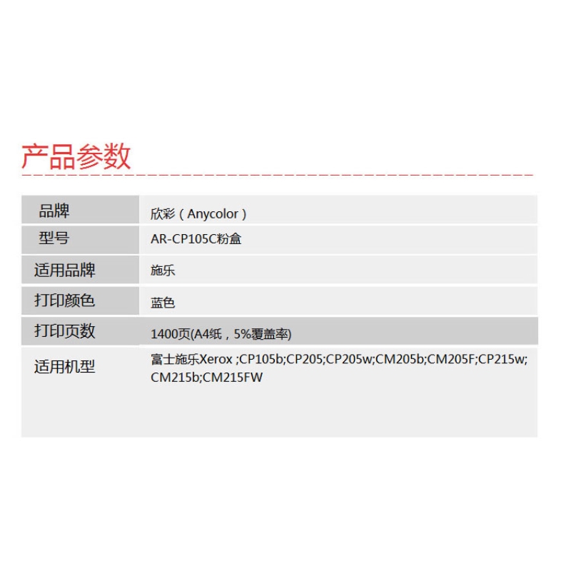 欣彩(Anycolor)CP105b粉盒(專業(yè)版) AR-CP105C藍色 CT201596適用施樂CP105b 205b 215 CM215fw 205