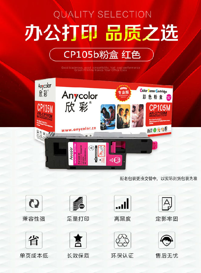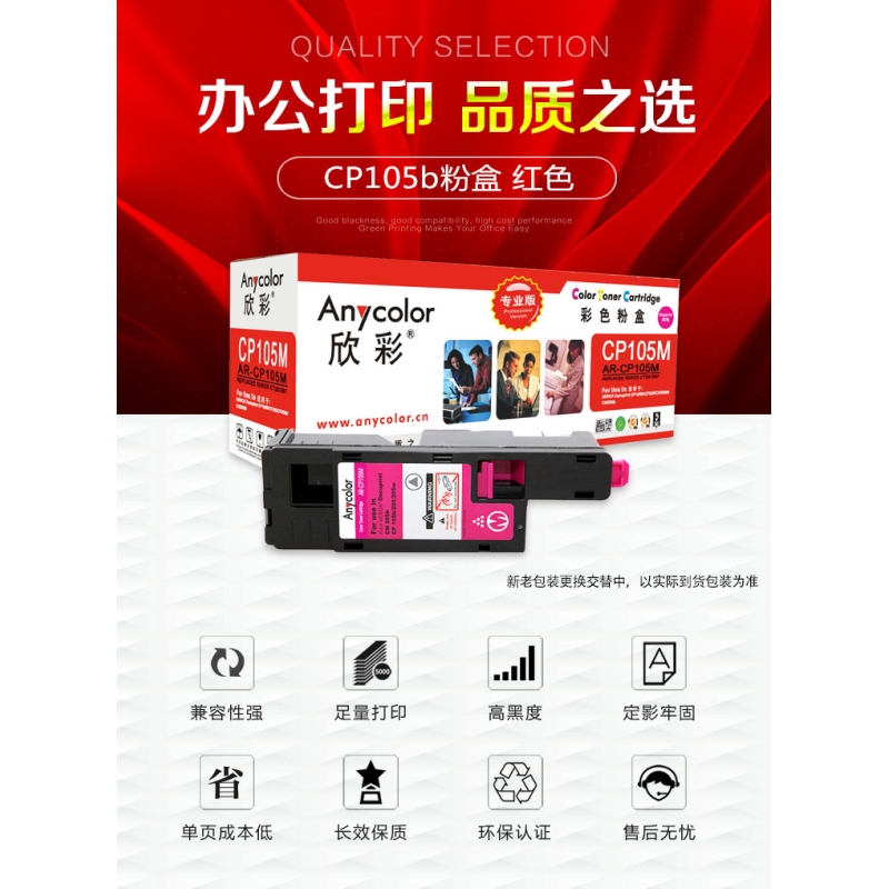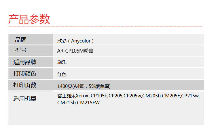 欣彩(Anycolor)CP105b粉盒(專業(yè)版) AR-CP105M紅色 CT201597適用施樂(lè)CP105b 205b 215 CM215fw 205