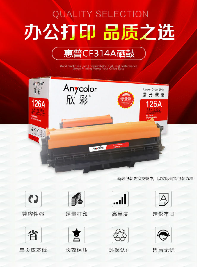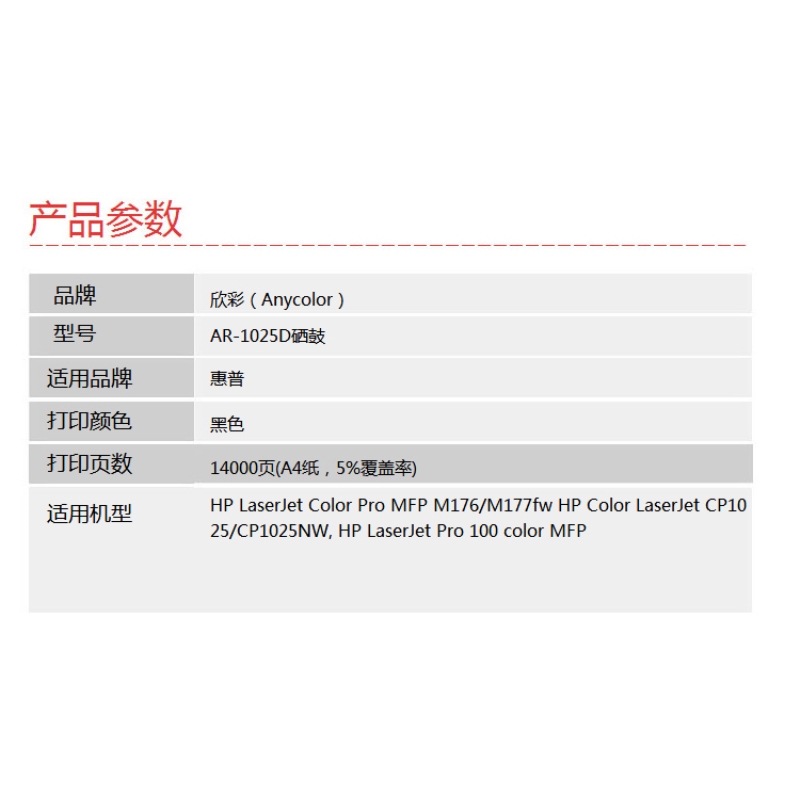 欣彩(Anycolor)CE314A硒鼓(專業(yè)版)AR-1025D鼓架126A適用惠普HP CP1025 M175A M175nw M275nw成像鼓